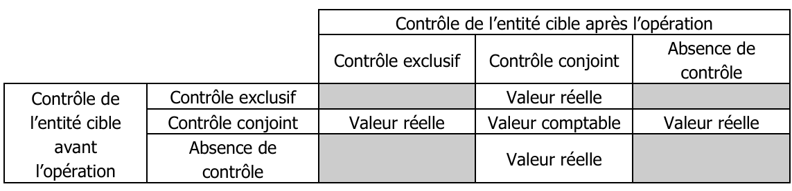 - l’entité cible, qui n’était pas contrôlée conjointement par l’entité initiatrice avant l’opération, passe sous son contrôle conjoint à l’issue de l’opération ;